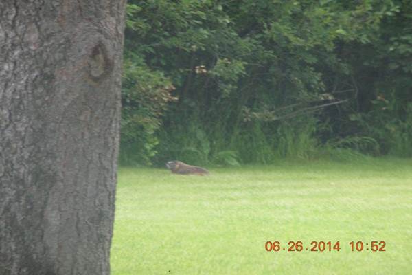 Pulling into one site in the park, Elaine spotted something next to the bushes. She got off two snapshots before it moved into the woods. We’re pretty sure it was a badger!