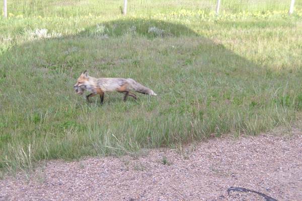 We’re staying in Wisdom, MT. A mile before town, we spotted a fox carrying a rabbit.
