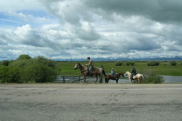 had been brought to a gate, then led down the two-lane road right at us! Five cowboys on horses and one woman in a pickup truck were handling the job - an authentic Montana experience.