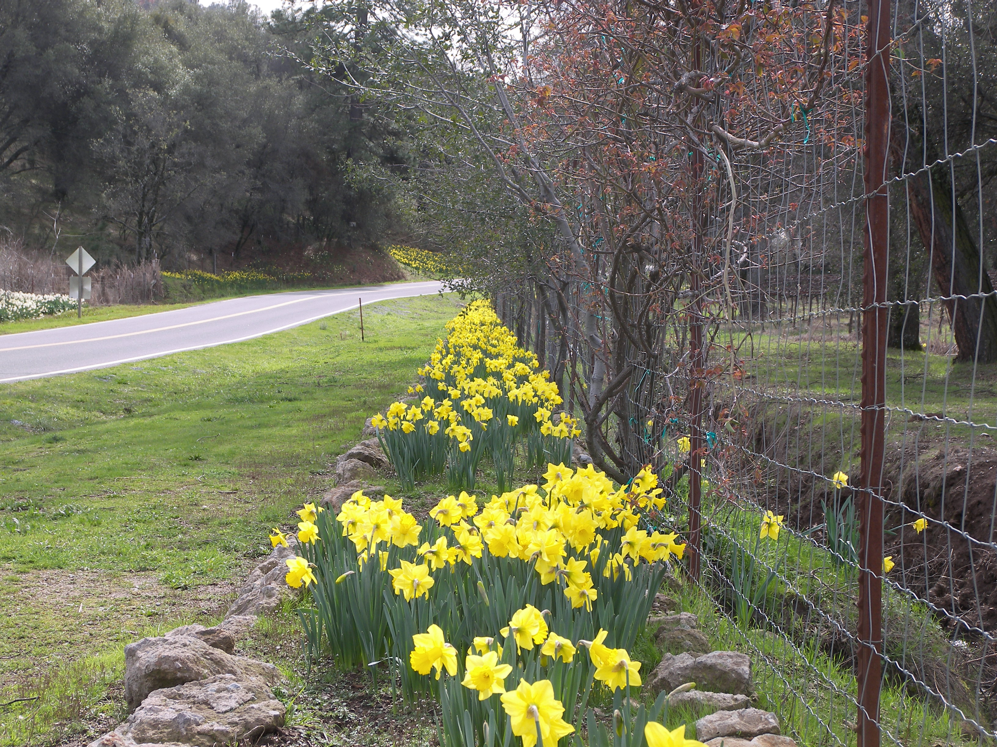 This is the hillside to the south as you enter Ironstone. The daffodils are out! Do click